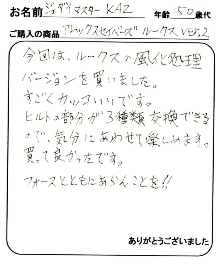 ほんと、実際に手にとって、良さが分かるライトセーバーだと思います