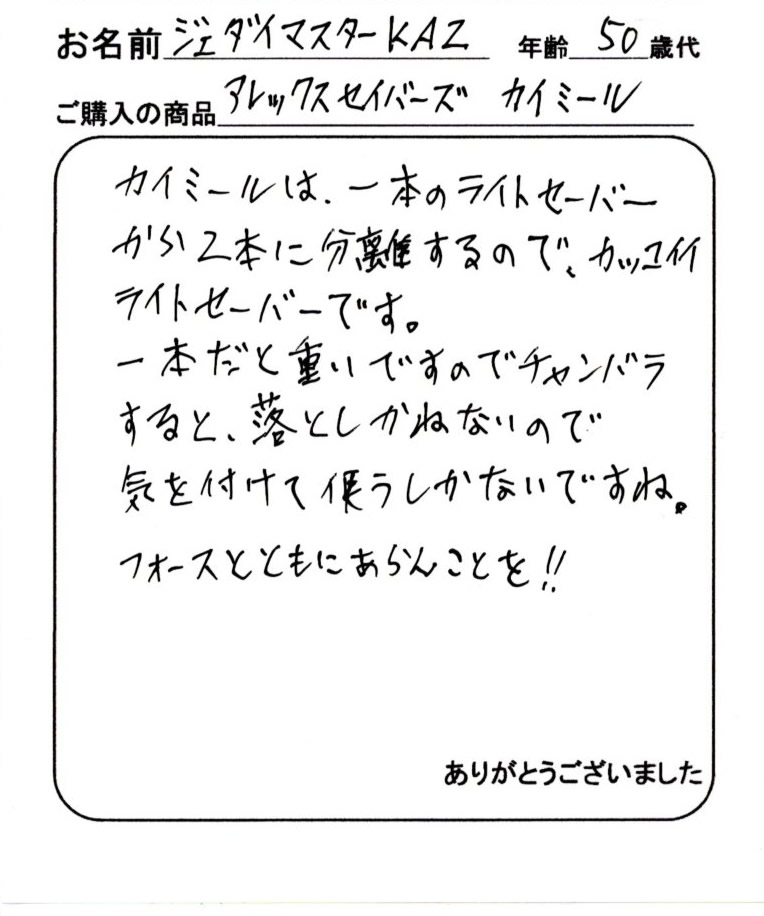 東京都 ジェダイ・マスターKAZ様(50代)