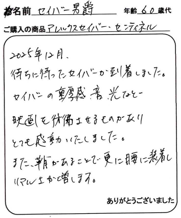 アレックスセイバーズをご購入のお客様の声