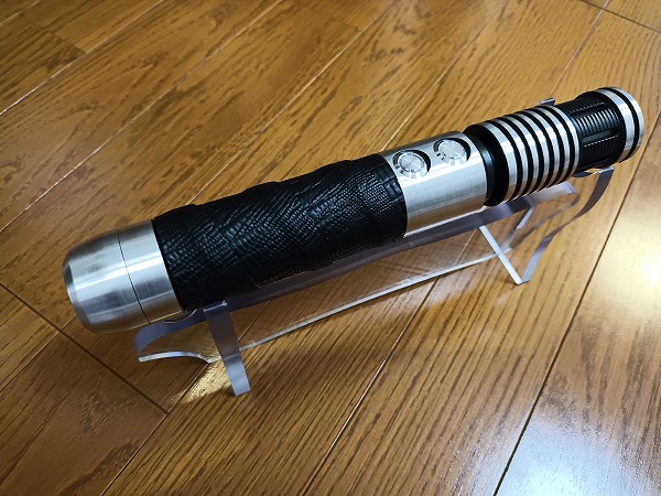 スタンド付き。サウンド、光のエフェクトはありません。ブレードも装着できません。飾り用です。