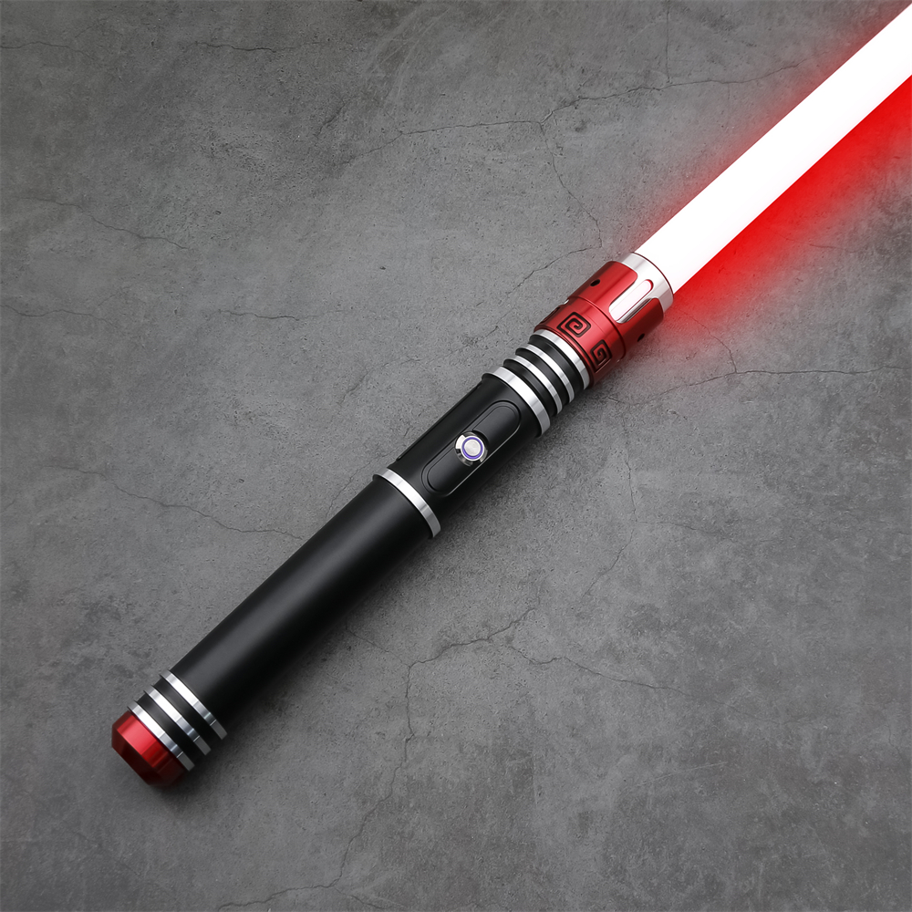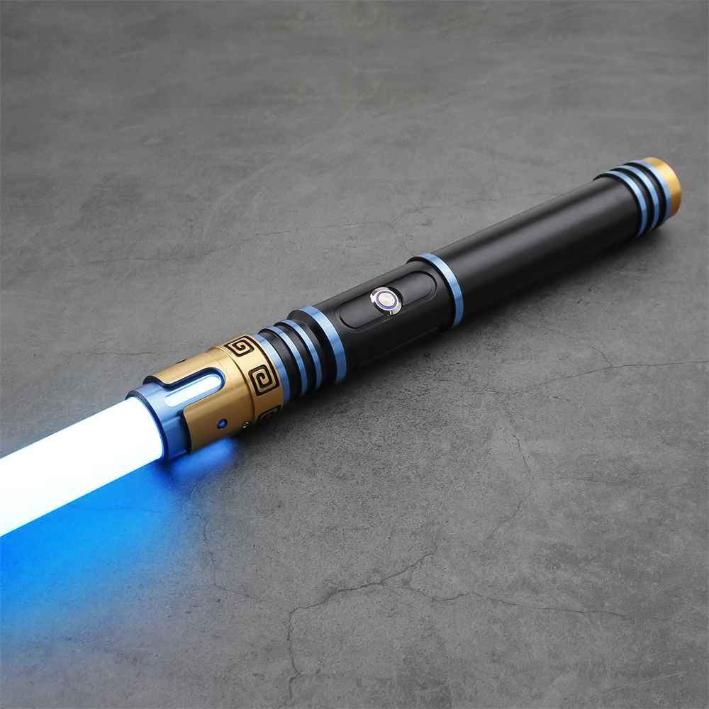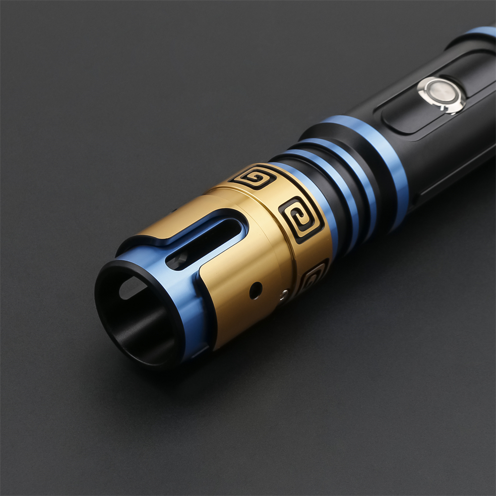 持ち手はシンプルでセイバーバトルがやりやすい。ポンメルとエミッターの装飾が美しい。レザー巻きがおすすめ。