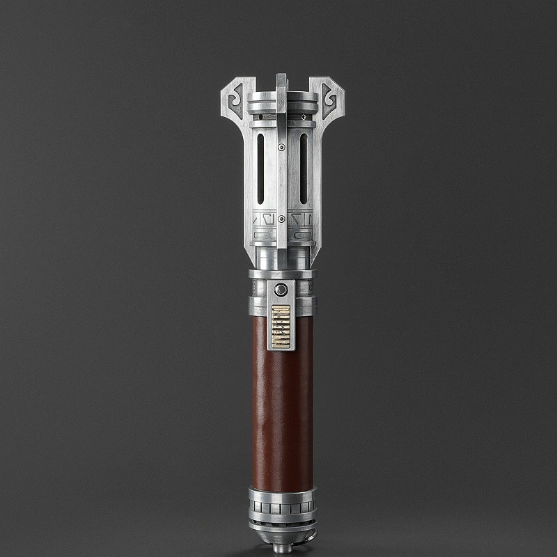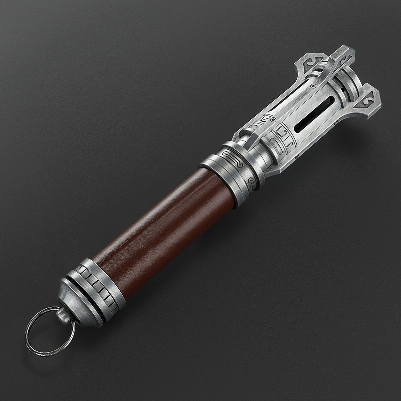 精緻な装飾、自然な風化処理、グリップのレザーと意匠を凝らしたライトセーバーです。気品と風格が漂います。
