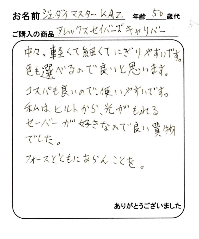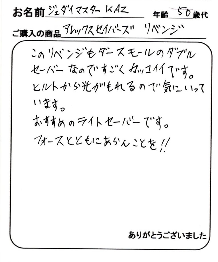 東京都 ジェダイ・マスターKAZ様(50代)