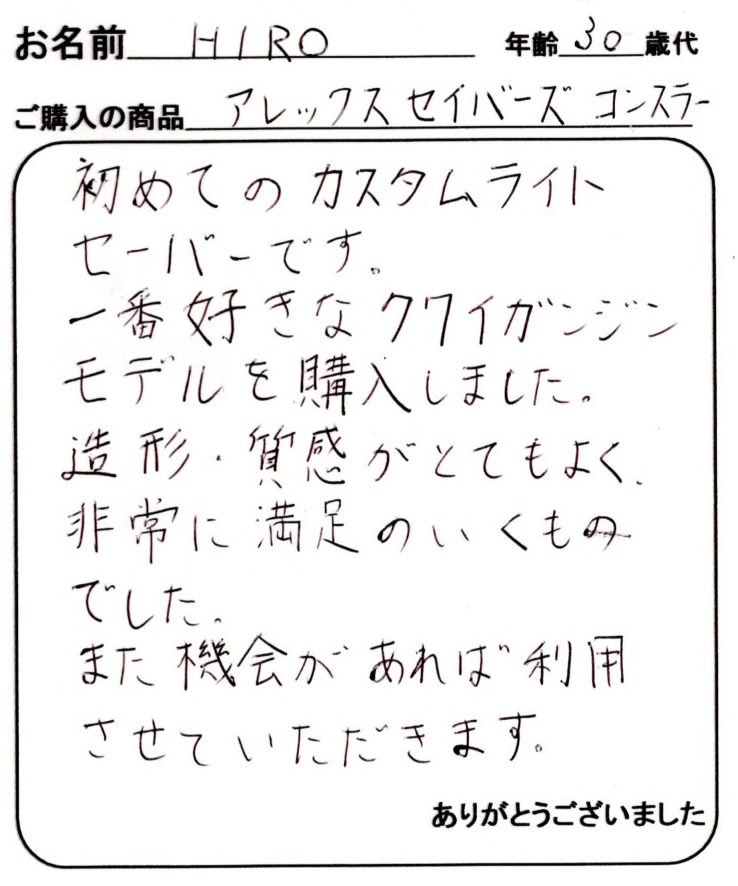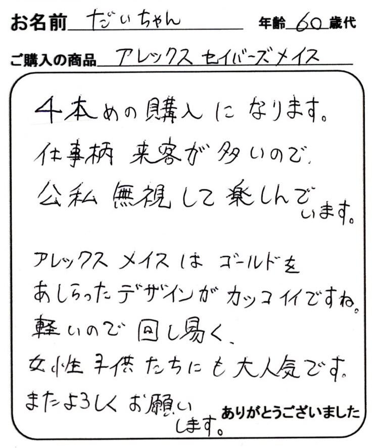アレックスセイバーズをご購入のお客様の声