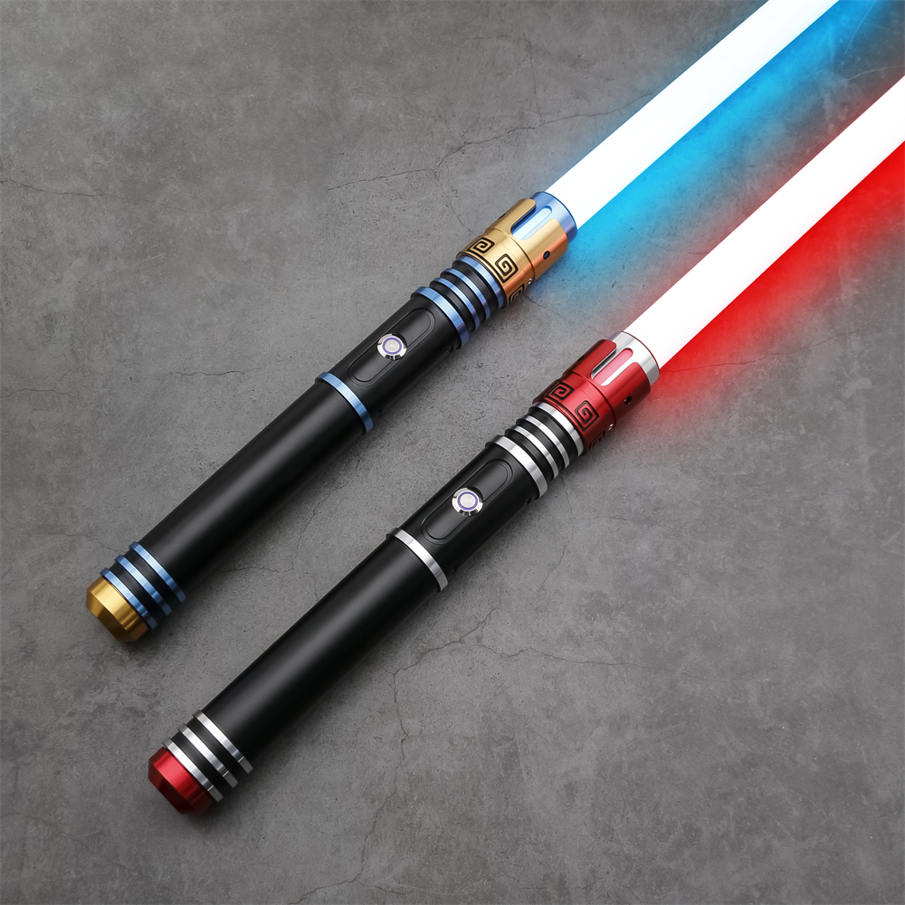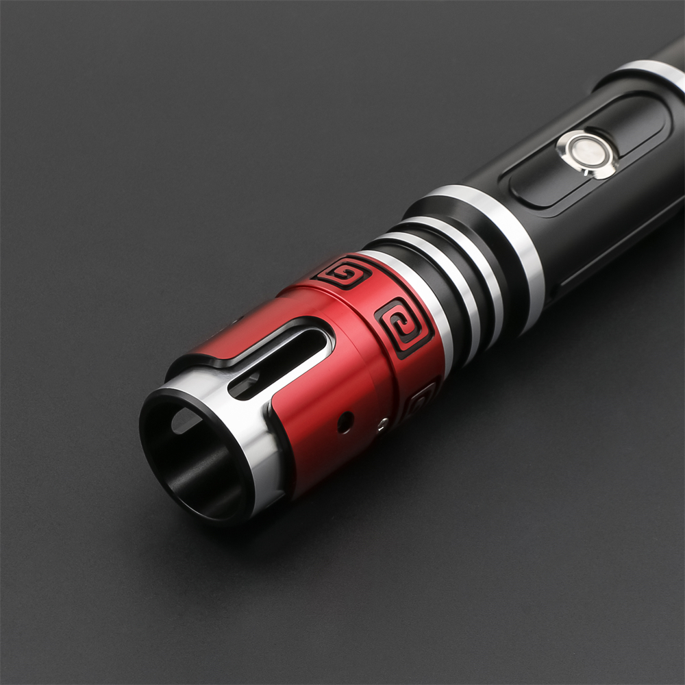 持ち手はシンプルでセイバーバトルがやりやすい。ポンメルとエミッターの装飾が美しい。レザー巻きがおすすめ。